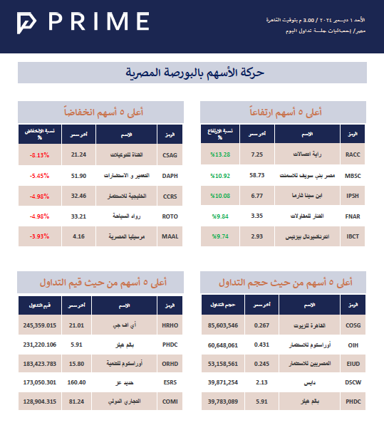 حركة الأسهم بالبورصة المصرية PRIME ResearchDec 01, 20241ShareStock Exchange 241201714KB ∙ PDF fileDownloadDownload PreviousNext