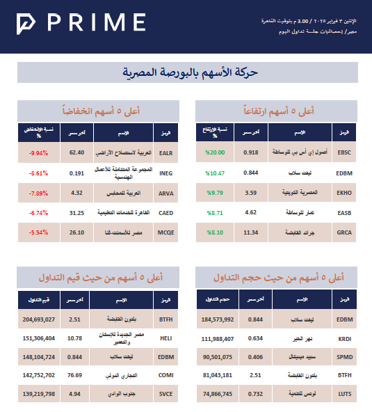حركة الأسهم بالبورصة المصرية PRIME ResearchFeb 03, 2025ShareStock Exchange 250203716KB ∙ PDF fileDownloadDownload PreviousNext