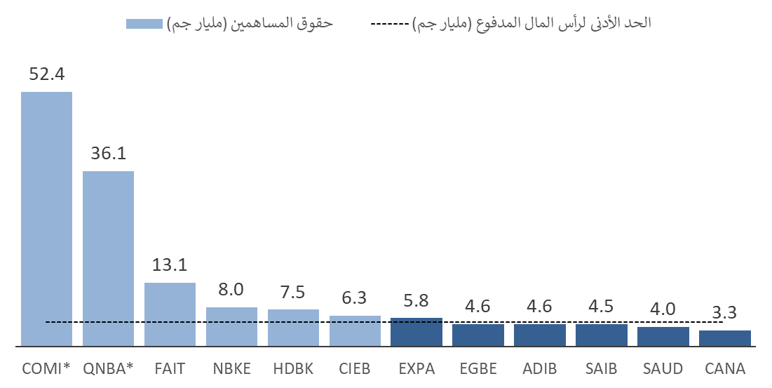 · رفع الحد الأدنى لرأس المال المدفوع للبنوك المصرية إلى 5 مليار جم وفي فروع البنوك الأجنبية إلى 150 مليون دولار، باستثناء البنوك المتخصصة والبنوك الرقمية. (طبقاً للمادة 65)