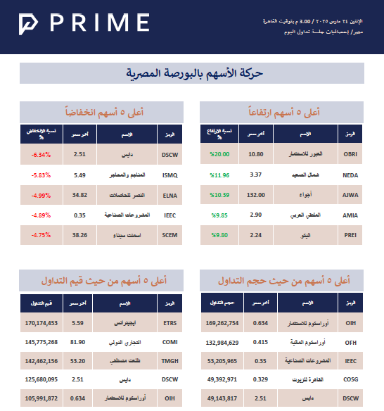 حركة الأسهم بالبورصة المصرية PRIME ResearchMar 24, 2025ShareStock Exchange 250324715KB ∙ PDF fileDownloadDownload PreviousNext
