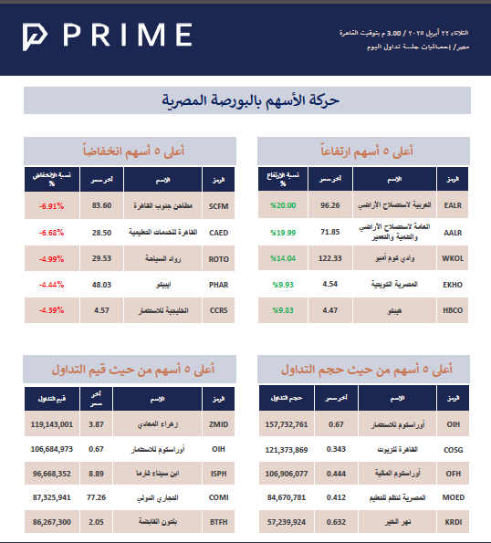 حركة الأسهم بالبورصة المصرية PRIME ResearchApr 22, 2025ShareStock Exchange 250422714KB ∙ PDF fileDownloadDownload PreviousNext