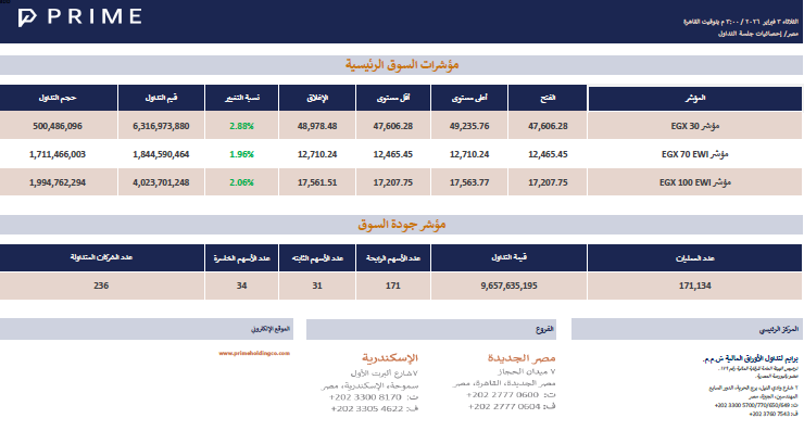مؤشرات السوق الرئيسيةPRIME ResearchFeb 03, 20261ShareIn 260203735KB ∙ PDF fileDownloadDownload PreviousNext