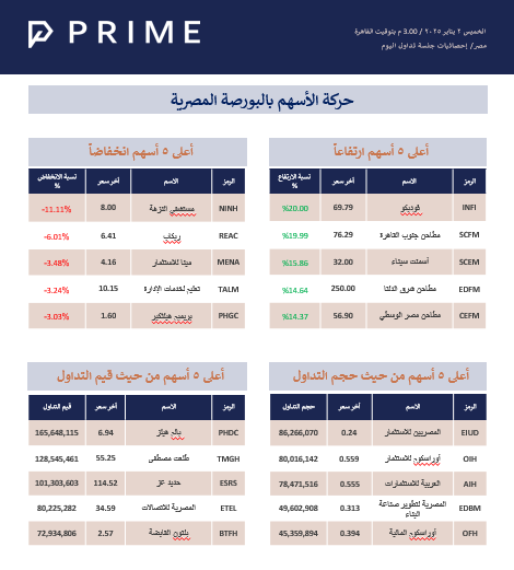 حركة الأسهم بالبورصة المصرية PRIME ResearchJan 02, 2025ShareStock Exchange 250102714KB ∙ PDF fileDownloadDownload PreviousNext