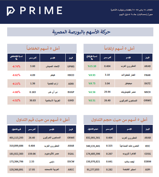 حركة الأسهم بالبورصة المصرية PRIME ResearchJan 21, 2025ShareStock Exchange 250121714KB ∙ PDF fileDownloadDownload PreviousNext