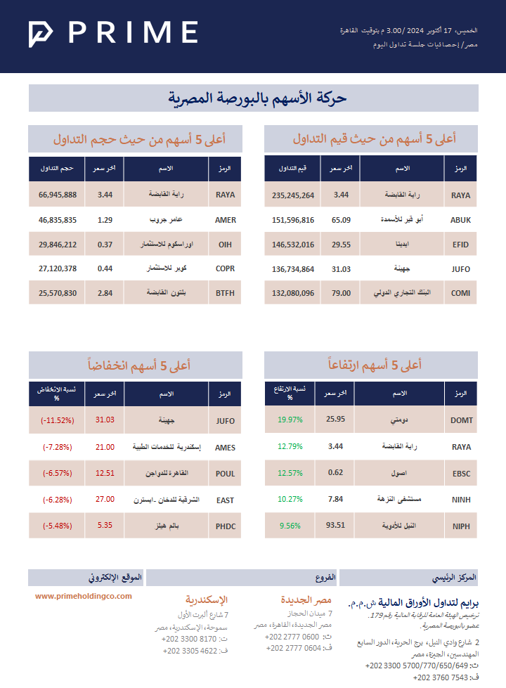 حركة الأسهم بالبورصة المصرية