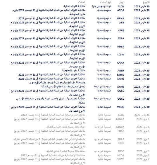 قررت الجمعية العامة العادية لشركة القاهرة للدواجن [POUL] عدم توزيع أي أرباح عن صافي أرباح 2022. (إفصاح الشركة)