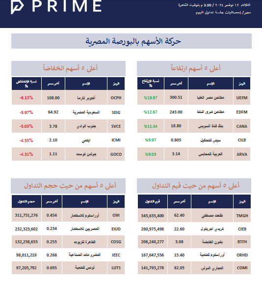 حركة الأسهم بالبورصة المصرية PRIME ResearchNov 12, 20241ShareStock Exchange 241112143KB ∙ PDF fileDownloadDownloadPreviousNext