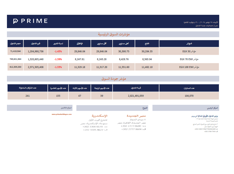 مؤشرات السوق الرئيسيةPRIME ResearchNov 27, 2024ShareIn 241127572KB ∙ PDF fileDownloadDownload PreviousNext