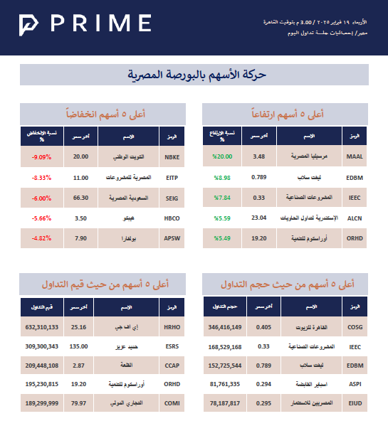 حركة الأسهم بالبورصة المصرية PRIME ResearchFeb 19, 2025ShareStock Exchange 250219715KB ∙ PDF fileDownloadDownload PreviousNext