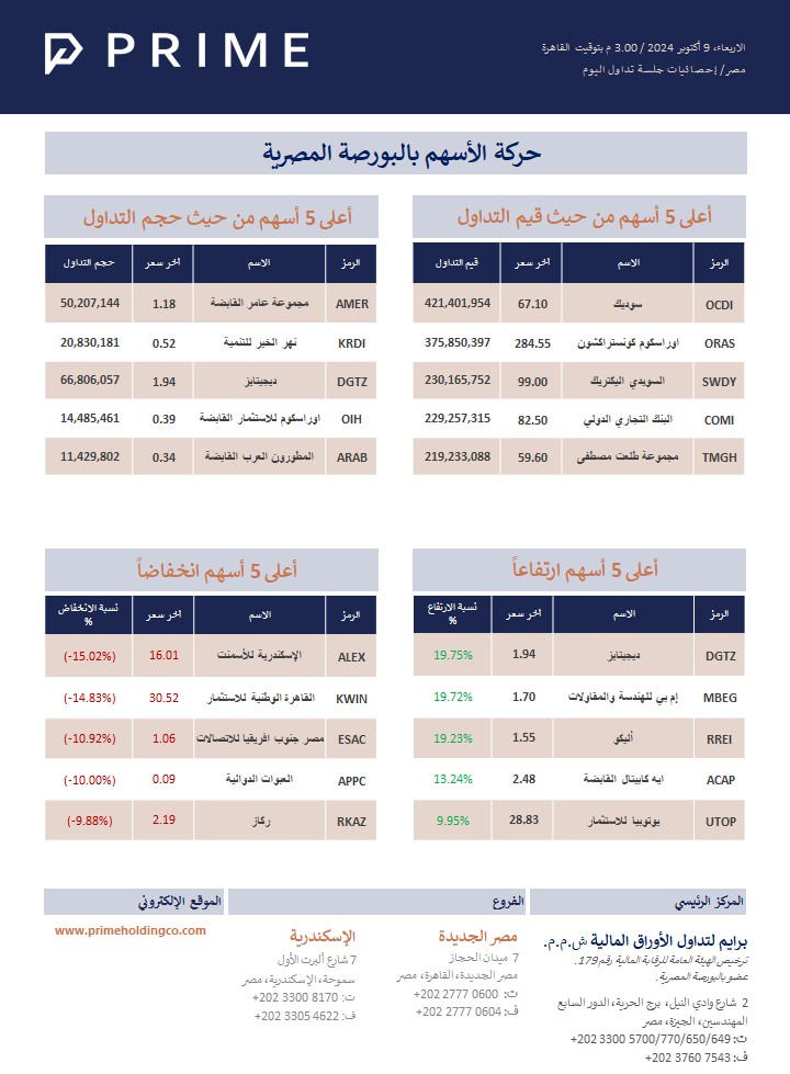 حركة الأسهم بالبورصة المصرية