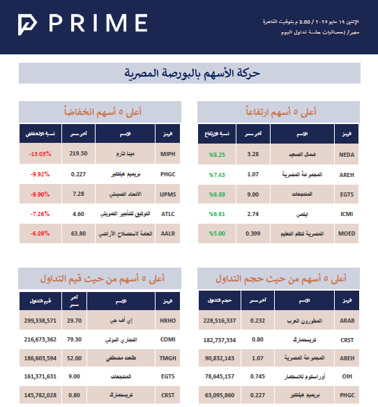 حركة الأسهم بالبورصة المصرية PRIME ResearchMay 19, 2025ShareStock Exchange 250519714KB ∙ PDF fileDownloadDownload PreviousNext