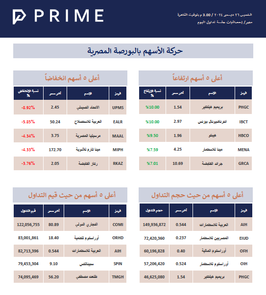حركة الأسهم بالبورصة المصرية PRIME ResearchDec 26, 2024ShareStock Exchange 241226714KB ∙ PDF fileDownloadDownload PreviousNext
