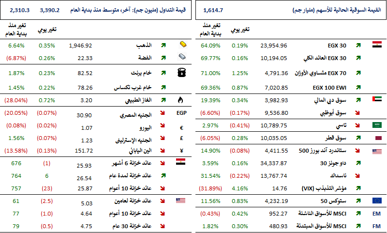 الأسهم المذكورة: ETEL, CIEB, SAUD, EXPA, TAQA, HELI, EGAS, EKHO, MICH, ADIB