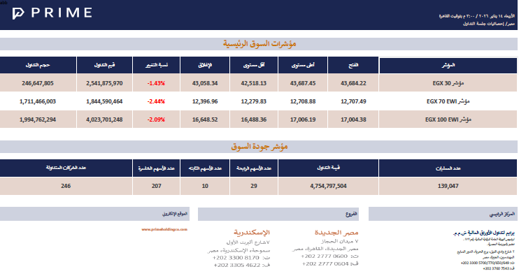 مؤشرات السوق الرئيسيةPRIME ResearchJan 14, 2026ShareIn 260114735KB ∙ PDF fileDownloadDownload Previous