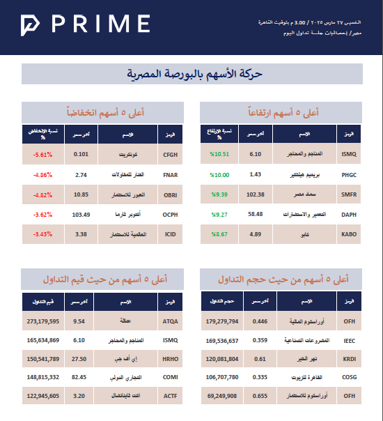 حركة الأسهم بالبورصة المصرية PRIME ResearchMar 27, 2025ShareStock Exchange 250327714KB ∙ PDF fileDownloadDownload PreviousNext