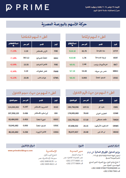 حركة الأسهم بالبورصة المصرية PRIME ResearchNov 27, 20242ShareStock Exchange 241127716KB ∙ PDF fileDownloadDownload PreviousNext
