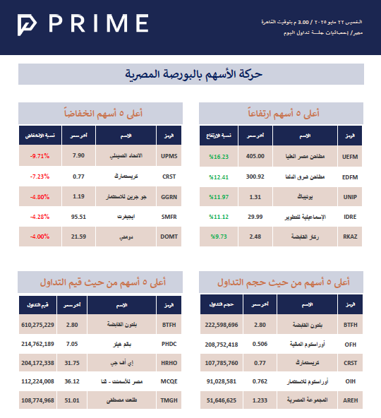 حركة الأسهم بالبورصة المصرية PRIME ResearchMay 22, 2025ShareStock Exchange 250522715KB ∙ PDF fileDownloadDownload PreviousNext