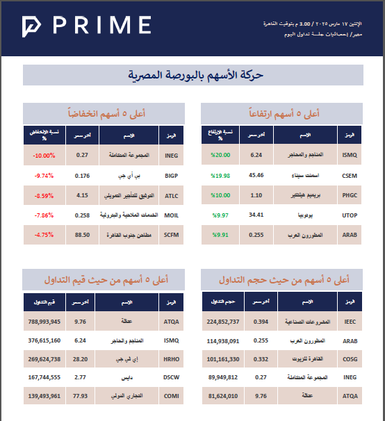 حركة الأسهم بالبورصة المصرية PRIME ResearchMar 17, 2025ShareStock Exchange 250317715KB ∙ PDF fileDownloadDownload PreviousNext