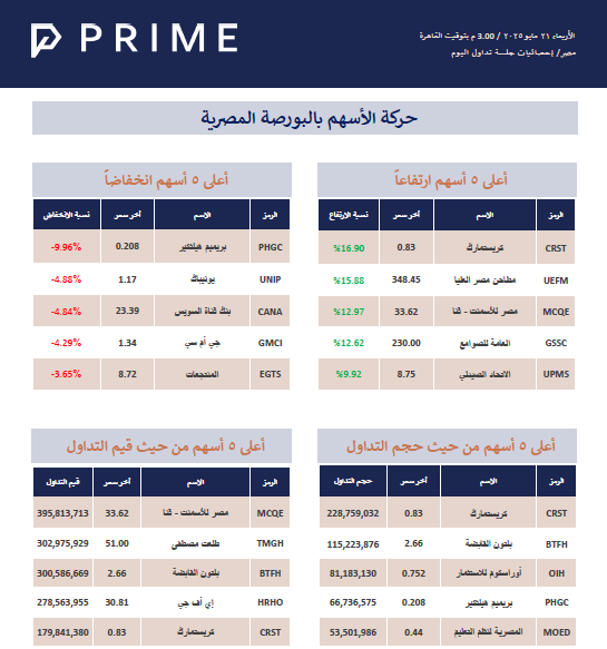حركة الأسهم بالبورصة المصرية PRIME ResearchMay 21, 2025ShareStock Exchange 250521714KB ∙ PDF fileDownloadDownload PreviousNext