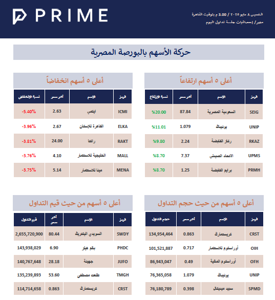 حركة الأسهم بالبورصة المصرية PRIME ResearchMay 08, 2025ShareStock Exchange 250508715KB ∙ PDF fileDownloadDownload PreviousNext