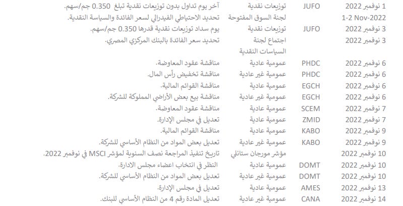 أعلنت شركة أوراسكوم كونستركشن [ORAS] عن بدء إنشاء مزرعة رياح بقدرة 500 ميجاوات في رأس غارب في تحالف مع شركة "إنجي" الفرنسية و "تويوتا تسوشو" اليابانية ووزارة الكهرباء والطاقة المتجددة. (إفصاح الشركة)مصر للألومنيوم تعلن عن النتائج الأولية للربع الأول 2022/2023