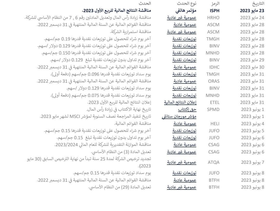 · بلغت مبيعات الخرسانة الجاهزة 97 مليون جم مقارنة بـ 68 مليون جم (+43% على أساس سنوي) بسبب بيع 82 ألف متر مكعب من الخرسانة خلال الربع الأول 2023 (+5% على أساس سنوي). في غضون ذلك، قطاع الخرسانة الجاهز كان له هامش مجمل ربح بنسبة 7% مقارنة بهامش مجمل خسارة بنسبة -1% في الربع الأول 2022. (إفصاح الشركة)