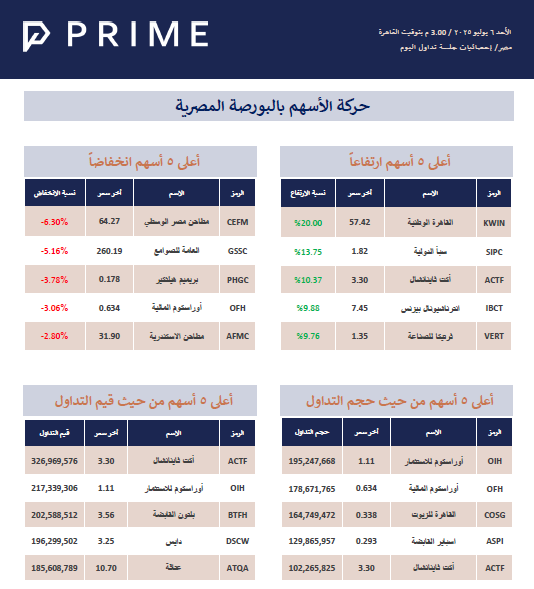 مؤشرات السوق الرئيسيةPRIME ResearchJul 06, 2025Share Stock Exchange 250706714KB ∙ PDF fileDownloadDownload PreviousNext