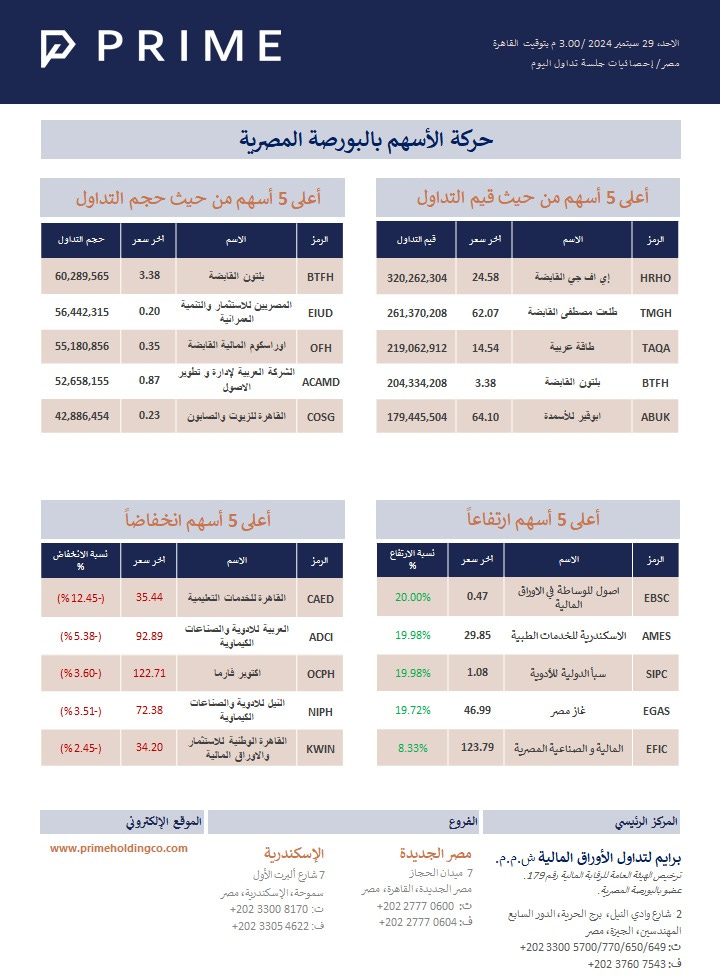 حركة الأسهم بالبورصة المصرية