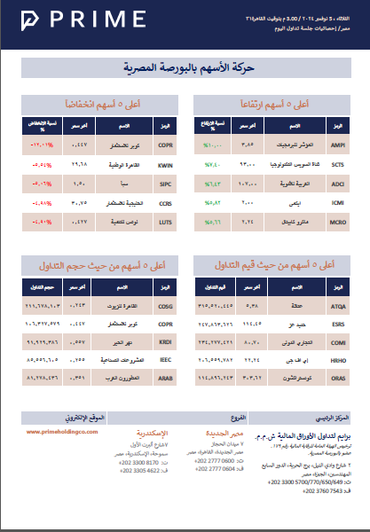 حركة الأسهم بالبورصة المصرية PRIME ResearchNov 05, 20242Shareحركة الأسهم 241105226KB ∙ PDF fileDownloadDownloadPreviousNext