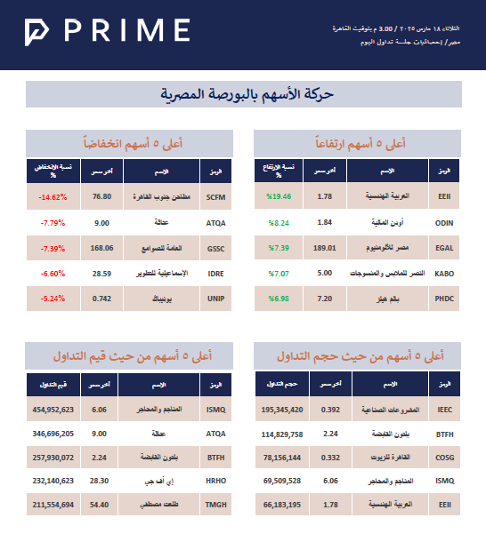 حركة الأسهم بالبورصة المصرية PRIME ResearchMar 18, 2025ShareStock Exchange 250318716KB ∙ PDF fileDownloadDownload PreviousNext