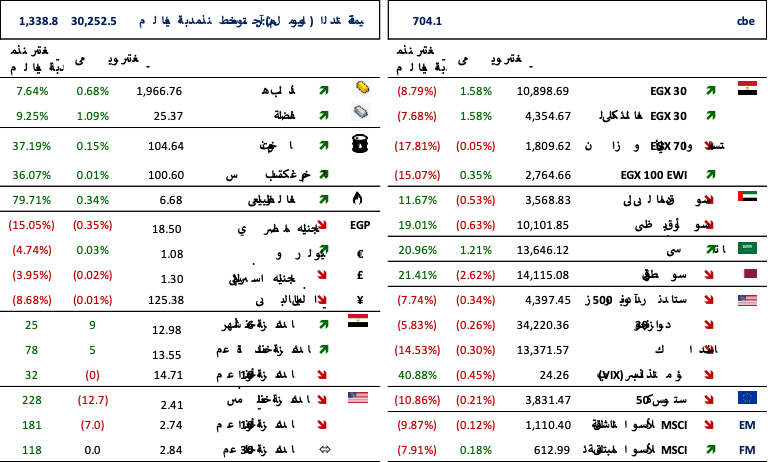 شهدت كلاً من أسهم البنك التجاري الدولي [COMI] وشركات فوري [FWRY]، وأبو قير للأسمدة [ABUK] ، وموبكو [MFPC]، والإسكندرية لتداول الحاويات والبضائع [ALCN]، تنفيذ صفقات ذات حجم كبير على أسهمهم اليوم من شركة أيه دي كيو القابضة الإماراتية (صندوق أبو ظبي السيادي) باستثمارات بلغت 1.85 مليار دولار أمريكي. (إنتربرايز)