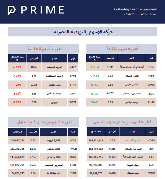 حركة الأسهم بالبورصة المصرية PRIME ResearchFeb 05, 2025ShareStock Exchange 250205715KB ∙ PDF fileDownloadDownload PreviousNext