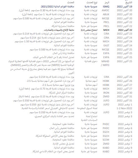 وافق مجلس إدارة أوراسكوم للاستثمار القابضة [OIH] على الحصول على قرض بدون فوائد بقيمة 81 مليون يورو مقدم من شركة شيو تكنولوجي، وهي شركة شقيقة لشركة OIH مقرها كورية الشمالية. سيتم الاحتفاظ بمبلغ القرض في الحساب المصرفي لـ OIH في كوريا الشمالية. علاوةً على ذلك، وافق مجلس الإدارة أيضاً على إطلاق برنامج شراء أسهم خزينة لإعادة شراء ما يصل إلى 10% من إجمالي الأسهم القائمة بأسعار السوق بين 18 أكتوبر 2022 و17 أكتوبر 2023. (إفصاح الشركة)