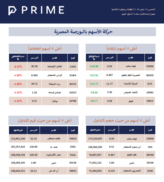 حركة الأسهم بالبورصة المصرية PRIME ResearchJan 16, 2025ShareStock Exchange 250116714KB ∙ PDF fileDownloadDownload PreviousNext