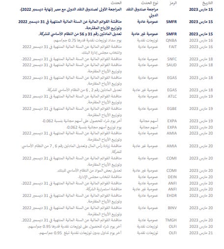 سيقترح مجلس إدارة مينا فارم للأدوية [MIPH] في اجتماع الجمعية العمومية غير العادية توزيعات أسهم مجانية بنسبة 512% (باستثناء أسهم الخزينة). بعد توزيع الأسهم، سيرتفع رأس المال المدفوع لـ MIPH بقيمة 603 مليون جم ليصل إلى 726 مليون جم من خلال توزيع 60,298,088 سهم بقيمة اسمية تبلغ 10.0 جم/سهم يتم تمويلها من خلال الأرباح المحتجزة. (إفصاح الشركة)