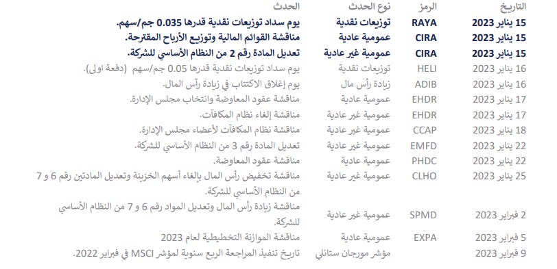 أفادت مصادر بأن صندوق مصر السيادي قد أضاف شركتي "صافي" والشركة الوطنية لبيع المنتجات البترولية "وطنية" المملوكتين للجيش، بجانب مصر لتأمينات الحياة والمصرية لإنتاج الألكيل بنزين الخطي "إيلاب" وبنك القاهرة [BDQC] المملوكين للدولة إلى صندوق ما قبل الاكتتاب تمهيدا لبيع ما بين 20-30% من كل شركة لمستثمرين استراتيجيين، مع جولة ترويجية لتسويق الأصول مقرر اجراؤها هذا الشهر. (الشرق)