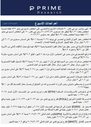 أهم أحداث الأسبوعPRIME ResearchSep 12, 2024ShareWeekly Highlights Ar 37414KB ∙ PDF fileDownloadDownloadPreviousNext