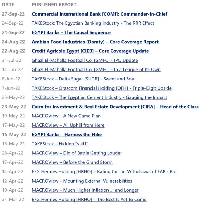 Obour Land Food Industries [OLFI] reported extraordinary Q3 2022 results, hitting its highest ever quarterly net profits and revenues. Bottom-line reached EGP146mn (+31% y/y), and revenues exceeded the EGP1bn mark, at EGP1.34bn (+64% y/y), on higher selling prices and sales volumes. Cheese segment contributed 95% to total revenues with EGP1.28bn (+66% y/y), while juice & milk contributed 5% with EGP66mn (+36% y/y). However, margins were pressured, where GPM recorded 20% (-4pp y/y) on higher raw material costs, and EBITDA margin was 15% (-2pp y/y). OLFI is currently trading at a TTM P/E of 4.9x. (Company disclosure)