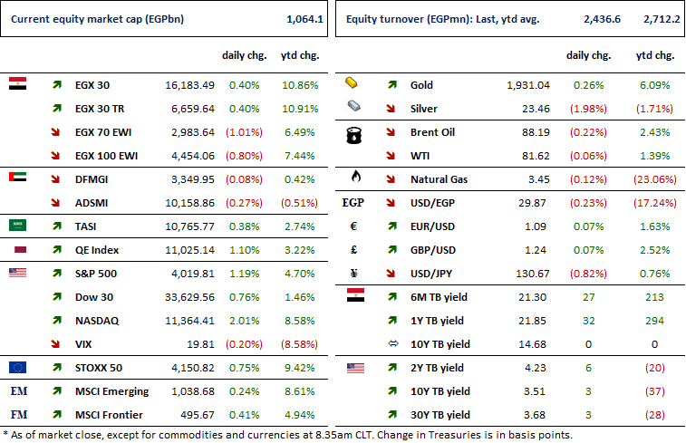 Misr Hotels [MHOT] reported net profits for H1 2022/23 at EGP347mn (+129% y/y), on higher continuing profits of EGP281mn (+85% y/y). Meanwhile, revenues grew to EGP399mn (+65% y/y). Gross profit margin came higher as well, at 91% (+4.5pp y/y). (Company disclosure)