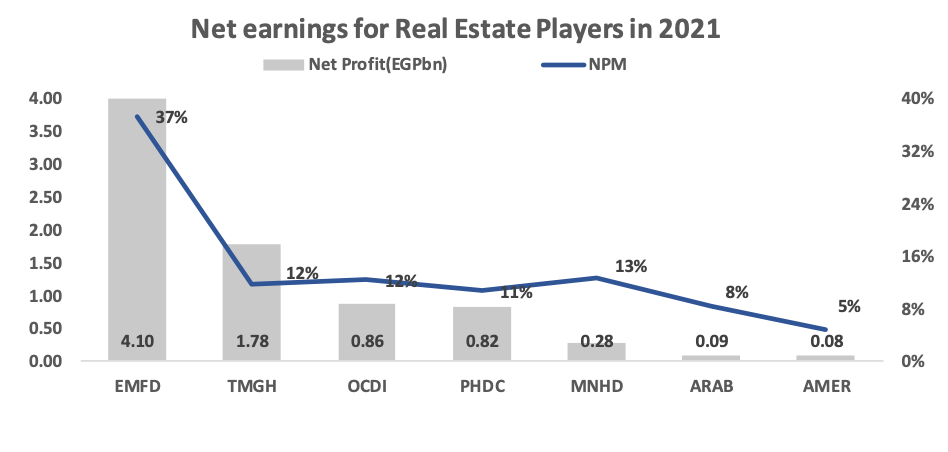 Emaar Misr for Development [EMFD] reported the highest NPM compared to its peers in 2021.