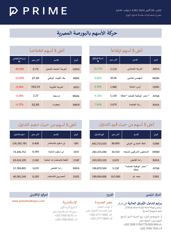 حركة الأسهم بالبورصة المصرية