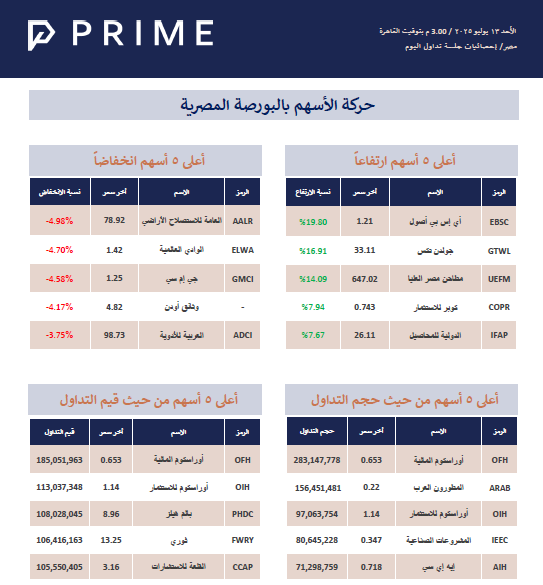 حركة الأسهم بالبورصة المصرية PRIME ResearchJul 13, 2025Share Stock Exchange 250713770KB ∙ PDF fileDownloadDownload PreviousNext