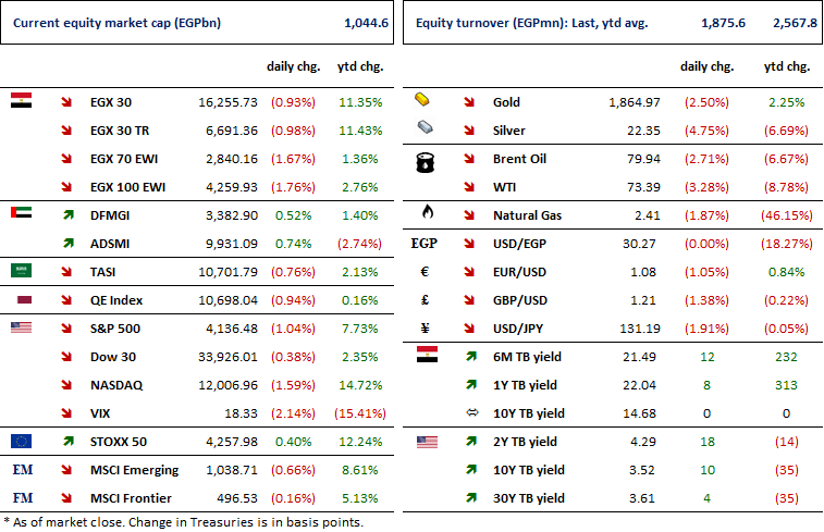 · Foreign portfolio investments (FPIs) registered a net outflow of USD2.2bn vs. an inflow of USD3.6bn a year before, on withdrawal of investments against the backdrop of the Russia-Ukraine conflict and a more hawkish U.S. Fed. (CBE)