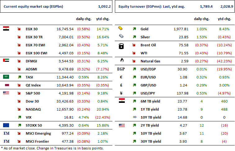 In line with our expectations at PRIMEResearch, the Monetary Policy Committee (MPC) at the Central Bank of Egypt (CBE) decided in its third meeting of the year to maintain the overnight deposit rate, the overnight lending rate, and the rate of the main operation at 18.25%, 19.25 %, and 18.75%, respectively. The discount rate was also maintained at 18.75%. The MPC cited that prices of international commodity prices and global inflationary pressures have eased. Moreover, forecasts for economic growth have broadly stabilized, while volatility in financial conditions of key advanced economies has eased compared to the previous MPC meeting. Domestically, Egypt's real GDP growth rate eased to 3.9% during Q4 2022 compared to 4.4% in Q3 2022, primarily driven by an improvement in tourism, agriculture, and trade. Meanwhile, broad money (M2) and its local currency components grew at a slower pace in March 2023. (CBE)