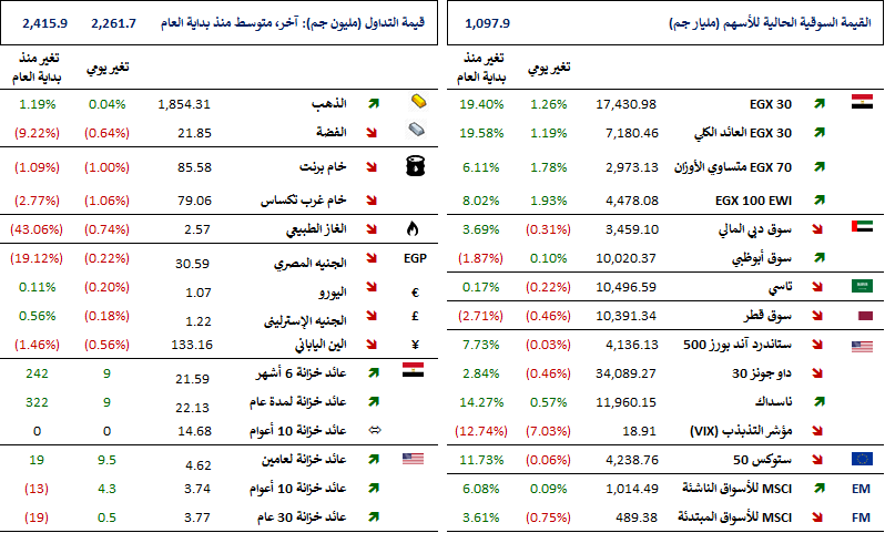 1) شركة شيميرا للاستثمارات التي تتخذ من الإمارات مقراً لها، حصة قدرها 2.62% أو 30.5 مليون سهم بقيمة 590.6 مليون جم.