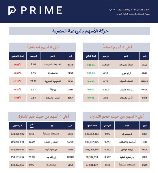 حركة الأسهم بالبورصة المصرية PRIME ResearchMay 13, 2025ShareStock Exchange 250513714KB ∙ PDF fileDownloadDownload PreviousNext