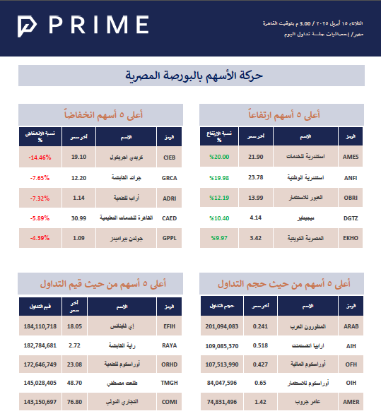حركة الأسهم بالبورصة المصرية PRIME ResearchApr 15, 2025ShareStock Exchange 250415715KB ∙ PDF fileDownloadDownload PreviousNext