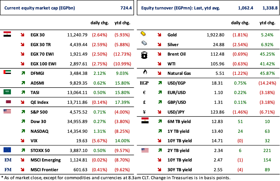 The government is now reviewing its public offerings program in light of the recent developments resulting from the Russian-Ukrainian war. Minister of Planning, said that the program for offering 10 companies is being studied with consultants, aiming to offer four to five companies during 2022 in sectors of Energy, insurance and the financials. (Economy Plus)