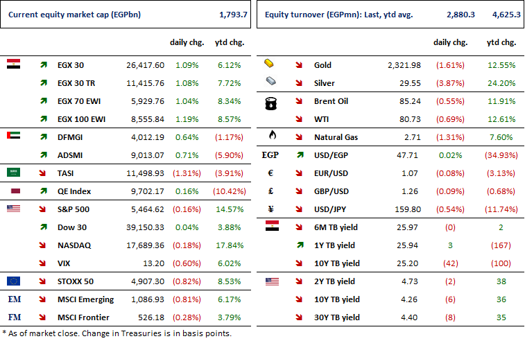 Egypt's exports keep rising through the first 5 months of FY24 reaching USD16.6bn vs. USD15.7bn last year. Exports reached USD3.5bn only in May 2024, recording the highest monthly exports rate. (Al-Borsa)