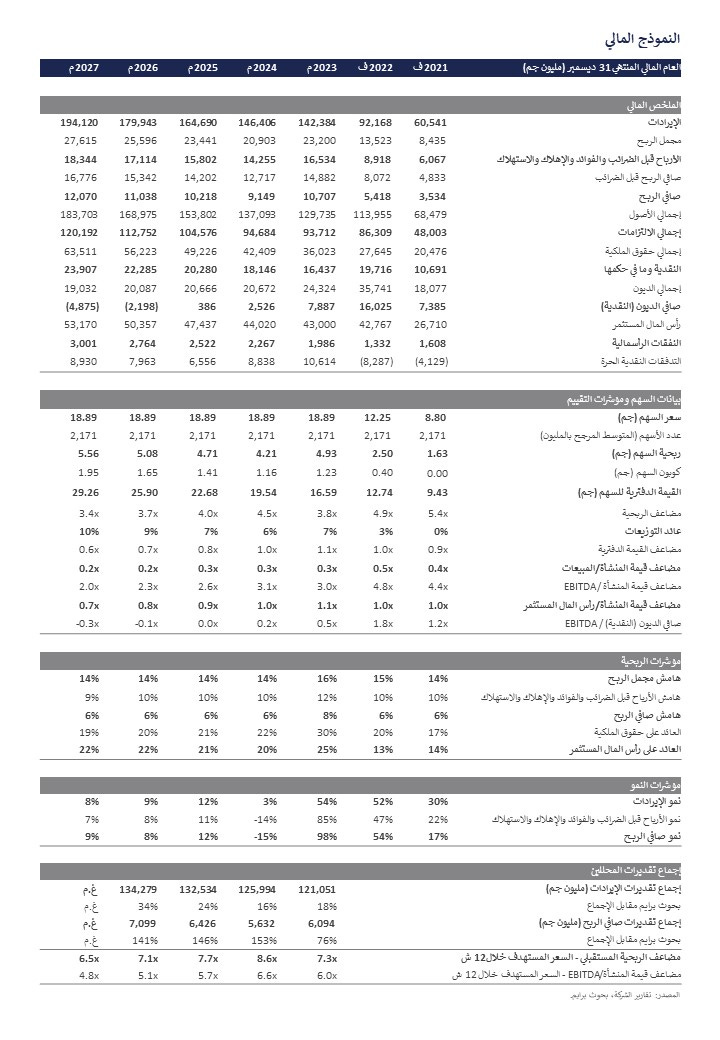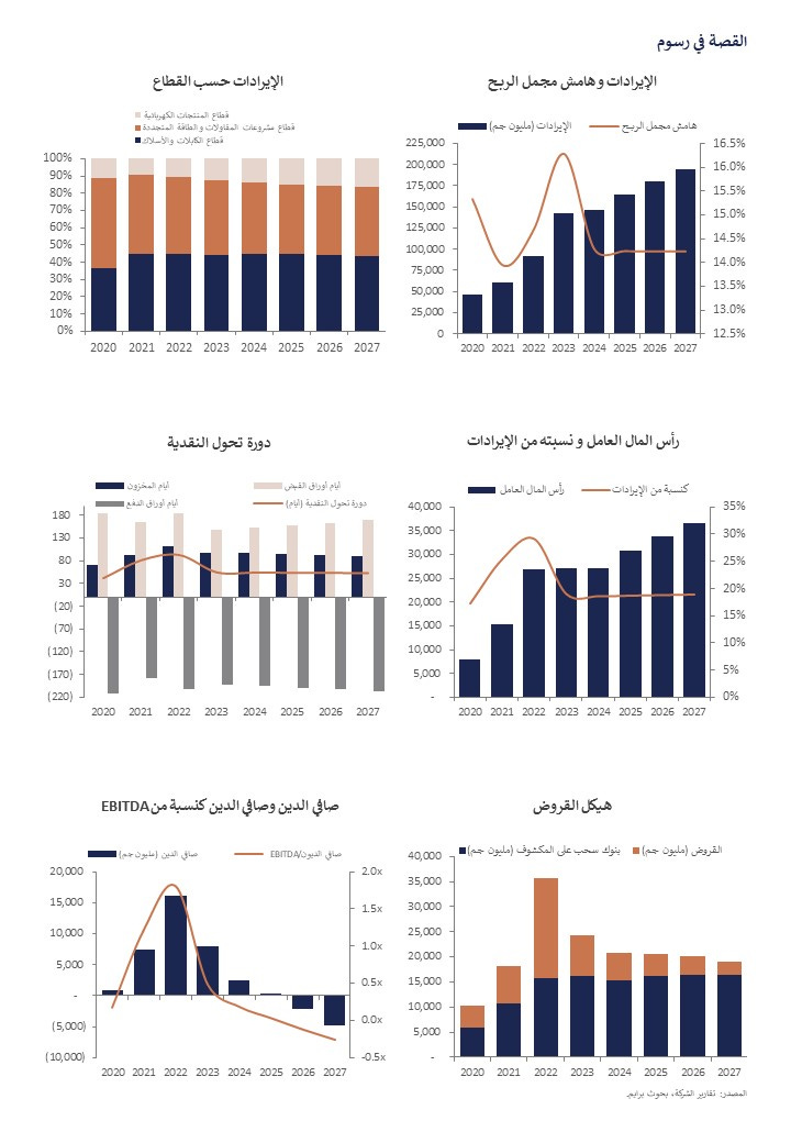مشاريع المقاولات: نتوقع أن تنمو الإيرادات بمعدل نمو سنوي مركب 5 أعوام بنسبة 12% لتصل إلى 68 مليار جم بحلول عام 2027 بفضل تراكم حجم المشاريع قيد التنفيذ في مصر ودول مجلس التعاون الخليجي.